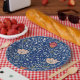 Dieses Design basiert auf einem Textilmuster von William Morris (1834-1896), der besonders für seine Assoziation mit der Kunsthandwerksbewegung bekannt ist. Es zeigt rosa-weiße Tulpen und rote Rosen vor blauem Hintergrund. Das ursprüngliche Muster wurde 1885 von William Morris geschaffen. Es ist bekannt als "Garden Tulip", "Tulip Vine" und "Medway".