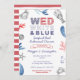 WED (Rot) Weißes und Blaues Probe Abendessen, Paare Dusche oder Engagement Party Einladungen. Besonders geeignet für eine Veranstaltung rund um einen Nationalfeiertag z.B. 4. Juli.