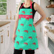 Garnelenmuster, lange Schürze in leuchtend türkis mit Platz für Namen oder anderen Text. Überall im Design gibt es Garnelen mit langen, wirbelnden Antennen und passendem rosa Streifen für Text. Die Gurte sind auch hell rosa. Diese Schürze hat drei Größen.