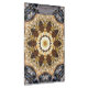 Ein abstraktes Mandala-Design aus Algen, Sand und Muscheln, die sich am Meeresufer finden.