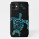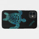 Das iPhone iPhone mit dem Thema Tier 11, mit einzigartigen Kunstwerken einer türkisfarbenen Meeresschildkröte, vor einem schwarzen Hintergrund. Personalisieren Sie den off aqua Text, für sich selbst oder als eine tolle Geschenkidee.
