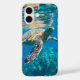 Photo sous-marine d'une tortue de mer nageant dans une eau cristalline juste en dessous de la surface.