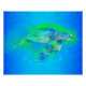Ein digitales Bild einer gefährdeten Hawaiianischen Meeresschildkröte, die in Blues und Grüntönen der Ozeane gemalt wurde.