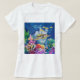 Seidenmalerei einer grünen Meeresschildkröte und Freunde. Kleine Goldfische, Engelfische und andere teilen sich das Meer mit bunten Algen und Korallen.