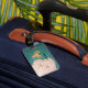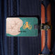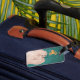 Ein lustiges Design mit Seestern an einem Sandstrand mit einem schweren Ozean und einem niedlichen Cartoon-Oktopus, ein tolles Gepäckanhänger, das für Sie bereit ist, für Ihren Strandurlaub zu personalisieren.