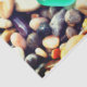 Zierpapier mit dem Bild von blauem Meerglas auf einem Kieselstrand.