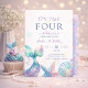Feiern Sie den besonderen Tag Ihres kleinen Schatzes mit dieser traumhaften Meerjungfrau-Geburtstagseinladung. Mit sanften Pastellfarben, schimmernden Meerjungfrau-Schwänzen, Muscheln und einem eleganten Unterwasser-Thema ist diese Einladung perfekt für eine magische Mädchen-Geburtstagsfeier. Ideal für einen 4. Geburtstag oder jede meerjungfrau-themed Feier, verleiht diese anpassbare Einladung Ihrem Ereignis eine zauberhafte und verzaubernde Note.