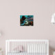 Eine Meerjungfrau, die auf einem Felsen unter Wasser sitzt, empfängt einen freundlichen Delphin.