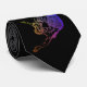 Ein Hand gezeichnetes Bild einer Meerjungfrau in den Regenbogenfarben verziert eine Krawatte, die jede mögliche Hintergrundfarbe haben kann. Diese Anzeigen-Krawatte hat einen schwarzen Hintergrund, zum der Farben der Meerjungfrauen zur Schau zu stellen, die unten die Krawatte kaskadieren, als wenn, schwimmend in den Kreisen in einem dunklen Meer.