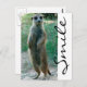 Lächeln Sie mit dieser lustigen Postkarte mit einem Meerkat stehend groß und scheinen auch zu lächeln.