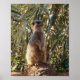 Stehend vor großen grünen Blätter ist ein Meerkat auf Wachdienst