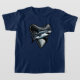 Dieses Kommando erfasst das Wesen des prähistorischen Megalodon, gerahmt in der ikonischen Silhouette eines Haizahs. Das Megalodon ist illustriert mit bemerkenswerten Details in einer Palette von tiefgründiger Blues und kontrastierenden Weißen, die seine beeindruckende Größe und Power unterstreicht. Seine Kiefer sind in einer Show der Kraft geöffnet, die eine beeindruckende Reihe von Zähnen aufzeigt. Die Silhouette des Zahnes sorgt für eine kühne Kontur, die den Gesamteinfluss des Designs erhöht und sowohl die uralte Kraft als auch das bleibende Erbe dieser legendären Kreatur symbolisiert. Die Verwendung einer tiefen schwarzen Kulisse ermöglicht es, die metallischen Akzente am Megalodon-Körper zu heben, wodurch ein elegantes und zeitgenössisches Emblem entsteht, das Dominanz, Widerstandskraft und eine beherrschende Präsenz vermittelt.