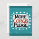 "More Corgis Bitte" ist ein niedliches Textdesign in blau mit schwarzem und rotem Text, mit weißer Akzent-Form und weißen, texturierten weißen, weißlichen, weißlichen Punkten, die ihn umgeben.