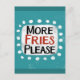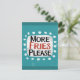 "More Fries Bitte" ist ein lustiges Textdesign mit weißer Akzent-Form, umgeben von weißen, weißlichen, weißlichen, weißgestrichenen Punkten.