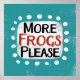 "More Frogs Bitte" ist ein lustiges Textdesign mit einer weißen Akzent-Form, umgeben von weißen, weißlichen, weißlichen, weißlichen, texturierten Punkten.