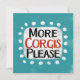 "More Corgis Bitte" ist ein niedliches Textdesign in blau mit schwarzem und rotem Text, mit weißer Akzent-Form und weißen, texturierten weißen, weißlichen, weißlichen Punkten, die ihn umgeben.