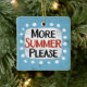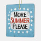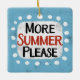 "Mehr Sommer bitte" ist ein niedliches Textdesign in blau mit schwarzem und rotem Text, mit weißer Akzent-Form und weißen, texturierten weißen, weißlichen Punkten, die ihn umgeben.
