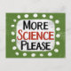 "More Science Bitte" ist ein niedliches Textdesign in grün mit schwarzem und rotem Text, mit einer weißen Akzent-Form und weißen, texturierten weißen, weißlichen Punkten, die ihn umgeben.