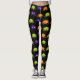 Farbenfrohe schwarze Halloween-Leggings mit mehrfarbigen Spinnen.