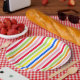 Mehrfarbig Rot-Gelb-Rosa-Orange Grüne blaue Süßigkeiten Streifen Linien auf weißem Hintergrund