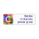 Kreise und Punkte adressieren Etiketten. Hintergrundfarbe und Text können angepasst werden.