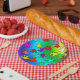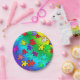 Bunte Puzzlen bessert das themed Geburtstags-Party, bunte Puzzlespielstücke, Farben sind Türkis, Blau, Gelb, Lila, Flieder und Rosa aus