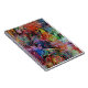 Lebhafte Farben und aufwändige Muster schaffen eine abstrakte Szene, die mit wirbelnden Formen und Blumenmotiven gefüllt ist. Das Zusammenspiel von warmen und coolen Farbtönen und texturierten Schichten verleiht Tiefe und Bewegung.