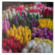 Bild von weißen, gelben, lila, rosa und roten Tulpen.
