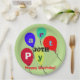 Mein originelles Grafikdesign. Meilenstein 30. Happy Geburtstag Einweg-Party-Teller. Party ist in den farbenfrohen roten, blauen, grünen und gelben Ballons geschrieben. Die sonnigen Augäpfel sind über 30. Personalisieren Sie für jedes Alter. Auf grünem Hintergrund dargestellt. Original Artwork Design von TamiraZDesign.