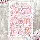 Aquarelle lettrée à la main Best Mom Ever design floral en rose. Modifiez ou supprimez le nom à personnaliser. Art original de Nic Squirrell. Vide au verso pour votre message manuscrit.