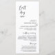 Notre carte Best Day Ever, Elégant minimaliste moderne, Script noir, Cérémonie de Mariage. Il est conçu avec un accent de défilement qui peut être personnalisé avec du texte personnalisé/personnalisé pour votre fête de mariage, les détails de cérémonie, des notes commémoratives et un message de remerciement. Si vous cherchez d'autres types et tailles de cartes de programme, veuillez consulter notre section de collecte de cartes de programme correspondant.