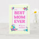 Une jolie carte pour la Fête des Mères pour la MEILLEURE MOM JAMAIS. Le design a un chèque jaune en vichy bordure autour des mots, "To the BEST MOM EVER Across the Miles", en lettrage rose magenta sur un arrière - plan blanc légèrement texturé. Il y a des grappes lumineuses de fleurs multicolores dans les coins et un petit coeur rose magenta. Le message intérieur peut être customisé ou supprimé si vous le souhaitez.