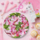Mein Garten mit exotischen Oleanderblumen im Mitte Pappteller