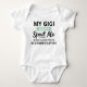 Dieses bezaubernde "Mein Gigi verwöhnt mich nicht" zeigt die besondere Bindung zwischen dem Kleinen und seiner verehrten Großmutter. Dieser Karosserieanzug, der für Komfort und Langlebigkeit sorgt, sorgt dafür, dass Ihr Baby jeden Moment mit Gigi im Stil genießen kann. Es ist die perfekte Art, ihre einzigartige Verbindung zu ehren. Lass deine Babyshow mit diesem süßen und herzzerwärmenden Bodysuit von ihrer Liebe ab.