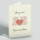 "Nur damit du es weißt... mein Herz ist für immer dein Herz" Niedliche Valentinstag-Karte mit Händen, die ein lächelndes rotes Herz tragen