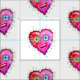 MEIN HERZ WIRD AUF KLEIDUNG & Nähstoff GLOW EIN lächelndes, zeitgenössisches Kunststil Emoji als ein rotes Herz-Emoticon Gesicht in den leuchtenden, farbenfrohen Valentinfarben von Rot, Pinks, Magentas und Purples betont mit anderen komplementären Farben.