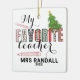 Feiern Sie Ihren Lieblingslehrer in dieser Ferienzeit mit unserem personalisierten Weihnachtsschmuck! Dieses charmante Design besticht durch einen festlichen Weihnachtsbaum, der mit Stiften aus der Schule geschmückt ist und den Geist des Klassenzimmers und der Weihnachtszeit einfängt. Das Wort "Favorit" ist in spielerischen, skurrilen Mustern gestaltet und fügt eine fröhliche und einzigartige Touch hinzu. Das Ornament umfasst die Schriftzeichen und kann auch mit dem Namen des Lehrers angepasst werden, was es zu einem nachdenklichen und personalisierten Geschenk macht. Ideal, um den Lehrern, die uns das ganze Jahr inspiriert haben, Anerkennung zu zollen.