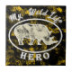 Ein Wildhelden, der Rhino, der auf einem grunzen, schwarzen und gelben Hintergrund aufgestellt wurde. Dieser ist für alle Liebhaber der Wildtiere, besonders für diejenigen, die gewollt haben, sich für den Schutz der bedrohten Nashörner unserer Welt einzusetzen.