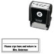 Diese Briefmarke hat eine Vorlage. Eine leere Zeile befindet sich oben, damit sich der Elternteil anmelden kann. Unter der Leerzeile befinden sich zwei Textzeilen. (Angezeigt: Bitte unterschreiben Sie hier und kehren Sie zu Frau Anderson zurück) Sie können den Text bearbeiten, um eine benutzerdefinierte Nachricht und den richtigen Lehrernamen anzuzeigen. Ein Rand ist um den Text herum.