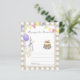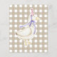 ALBERN GOOSE. Party mit Aquarellfarben-Kindergeburtstag. Wasserfarbene niedliche Gans in Geburtstagshut, Kuchen mit Beeren, lila Ballon, festliche Garland von Fahnen. Beigefarbener Käfighintergrund.