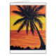 orangefarbene Sonnenuntergangsfarben, schwarze Palme, ruhiges Wasser