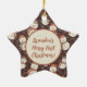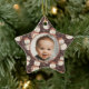 Baby's first Christmas photo ornament with a cute neutral earth tone Christmas snowman pattern with mellow smiling cream snowmen in terra cotta red hats and scarfs set on a chocolate brown background with line drawn flowers and holly. The photo and "Brandon's Merry First Christmas!" text are fully customizable using the Zazzle template functions. This design is part of the Mellow Snowmen Christmas collection where you will find many matching products like cards, pillows, stickers, gift wrap, ribbons, and tags, and custom stockings. There is also a Mellow Snowmen Xmas collection that uses the same snowmen pattern in fun traditional candy cane red and kelly green colors. The cute baby boy stock photo is by Christian Bowen on Unsplash. Merry Christmas!