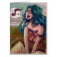 Ein Produkt mit einem reizenden und bunten Entwurf auf ihm, der eine junge, grün-haarige Frau ist, die ein Lied singt, in einer Wiese.