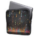 Das Bild zeigt eine lebendige und farbenfrohe Darstellung verschiedener musikalischer Noten, die von der Dunkelheit oben auf eine reflektierende Oberfläche unten zu regnen scheinen. Die Noten sind in den Neonfarben Gelb, Orange, Rosa, Blau und Grün auf schwarzem Hintergrund beleuchtet. Wenn sie die Oberfläche darunter treffen, erzeugen sie dynamische Lichtsprüche, die Funken oder Feuerwerk ähneln. Dieses Kunstwerk erfasst das Wesen der Musik als visuelles Spektakel und vermittelt das Gefühl der Energie und Bewegung, die mit Rhythmus und Melodie assoziiert sind.