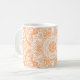 Dieses weiße Mandala liegt auf einem hellorangen Hintergrund. Die Farben sind fröhlich und energisch. Teil der Sammlung Bardh Mandala.
