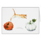 Autumn Harvest Art Design - Tabby Cat Jumping From White Pumkin to Orange Pumkin.