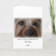 Porträt eines schönen Yorkie, der in die Ferne starrt, als würde ich sagen, ich werde zusehen und für dich gewartet. Ein treuer Begleiter verlasse ihn nie. Personalisieren Sie diese Beileid-Karte mit einem Foto des geliebten Begleiters eines Freundes . Auch Inside Text kann angepasst werden.