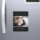 Ein schlichter und eleganter Magnet für das Foto. Ein schwarzer Hintergrund, weiße Rahmen. Personalisieren und fügen Sie ein Foto und Details. Text: Für immer in unserem Herzen.