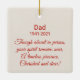 Mit unserem Weihnachtsschmuck können Sie das Wesen der gepflegten Erinnerungen erfassen. Verziert mit einem strahlenden roten Kardinal inmitten winterlicher Urlaubstage, ein Symbol für Erinnerung und Hoffnung. Auf der drehend Seite befindet sich ein herzliches Gedenkgedicht mit einem speziellen Platz für den Namen, das Geburtsjahr und das Jahr des Verstorbenen. Bewahren Sie den Geist Ihres Liebsten in dieser Feriensaison mit einer ansprechenden Hommage.