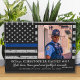 Ehre deinen geliebten Polizeibeamten und mit diesem Thin Blue Line Police Memorial Foto Geschenk. Personalisieren Sie Ihre Offiziere mit Foto, Name und Abzeichen Nummer und Daten . Zitat: Gut gemacht, du guter und treuer Diener. Matthew 25:23 . COPYRIGHT © 2020 Judy Burrows, Black Dog Art - Alle Rechte vorbehalten. Foto-Block für die Polizeipräsenz der Thin Blue Line